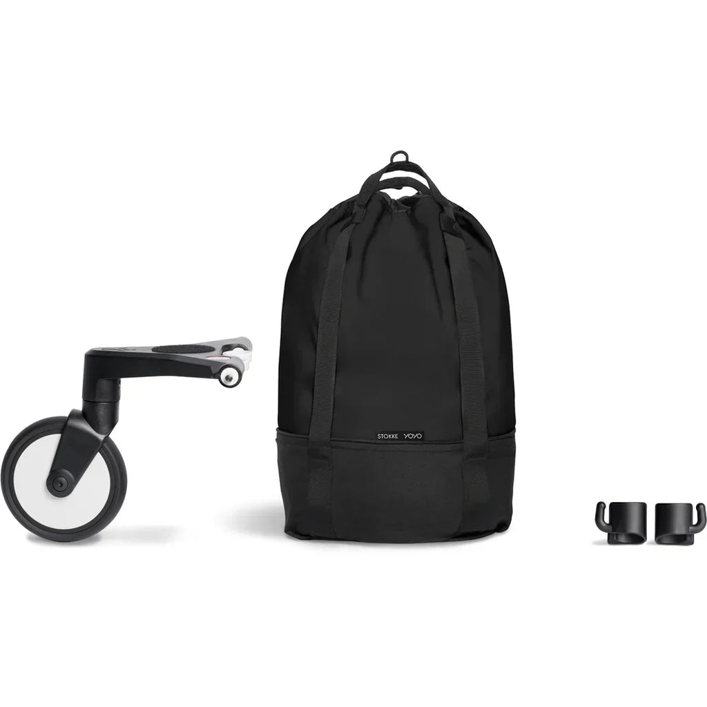 The Stokke YOYO bag hooks onto the YOYO stroller in seconds and, thanks to its wheel, supports an additional 10 kg (22 lbs) without extra efforts. Loaded with groceries or your gear, your YOYO² remains maneuverable, light, completely stable and always navigable with one hand. An end to those strollers that tip over under the weight of bags hanging from the handlebars!