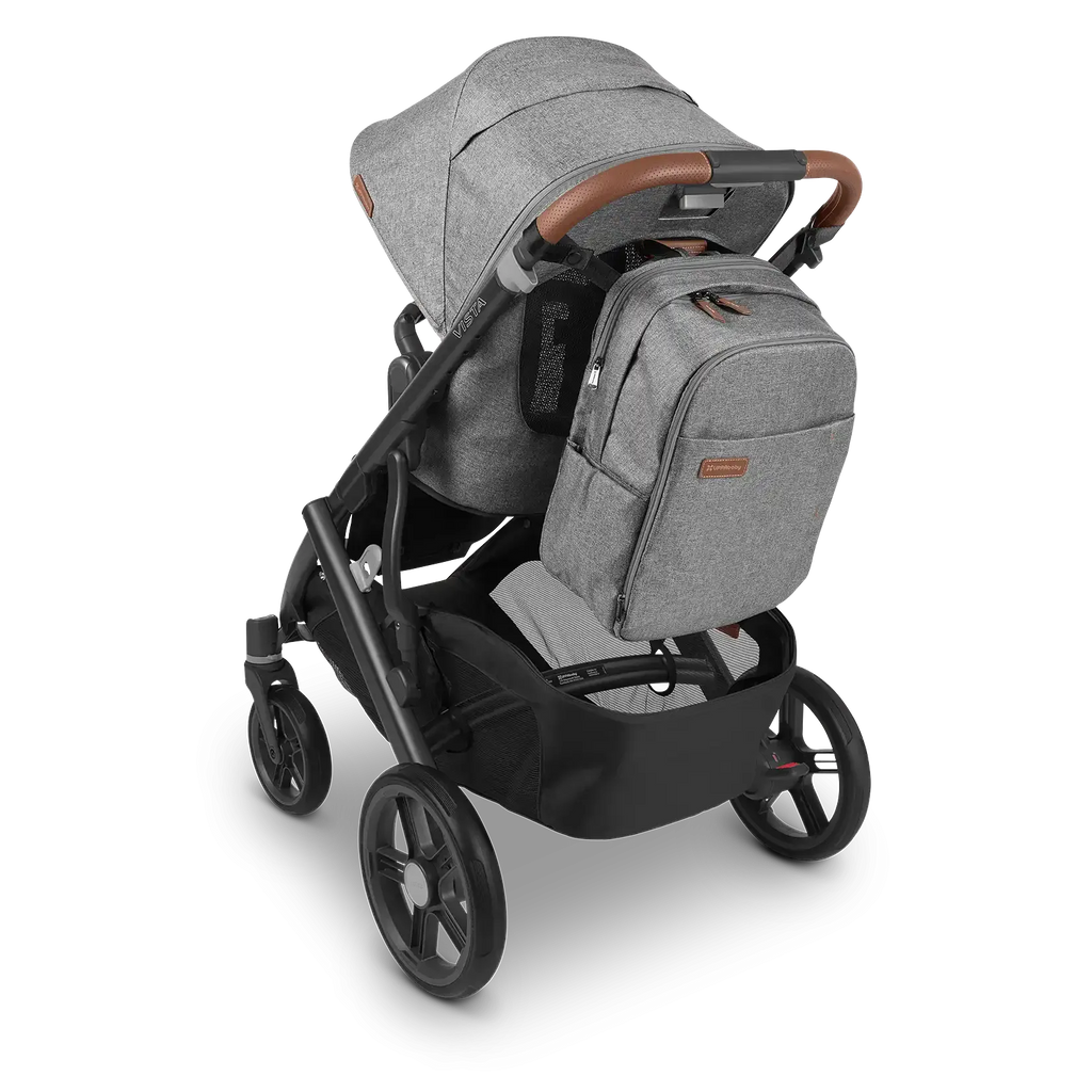 The UPPAbaby Changing Backpack combines style and practicality with a well-organized interior, dedicated laptop compartment, and easy-to-access travel features to help parents stay organized on the go. Premium fabrics and leather accents create a custom look that matches UPPAbaby strollers and transitions smoothly from work to play.