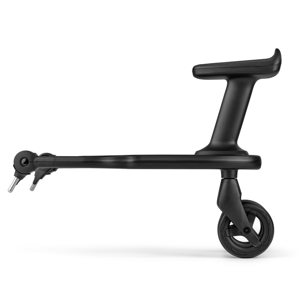 The Bugaboo Wheeled Board enables tired toddlers to ride alongside any Bugaboo stroller. Its two-wheel design integrates seamlessly with all Bugaboo models, providing a smooth and secure ride. Adjustable positions offer generous walking space, and the board can be easily shifted from left to right to find the most comfortable angle for you.