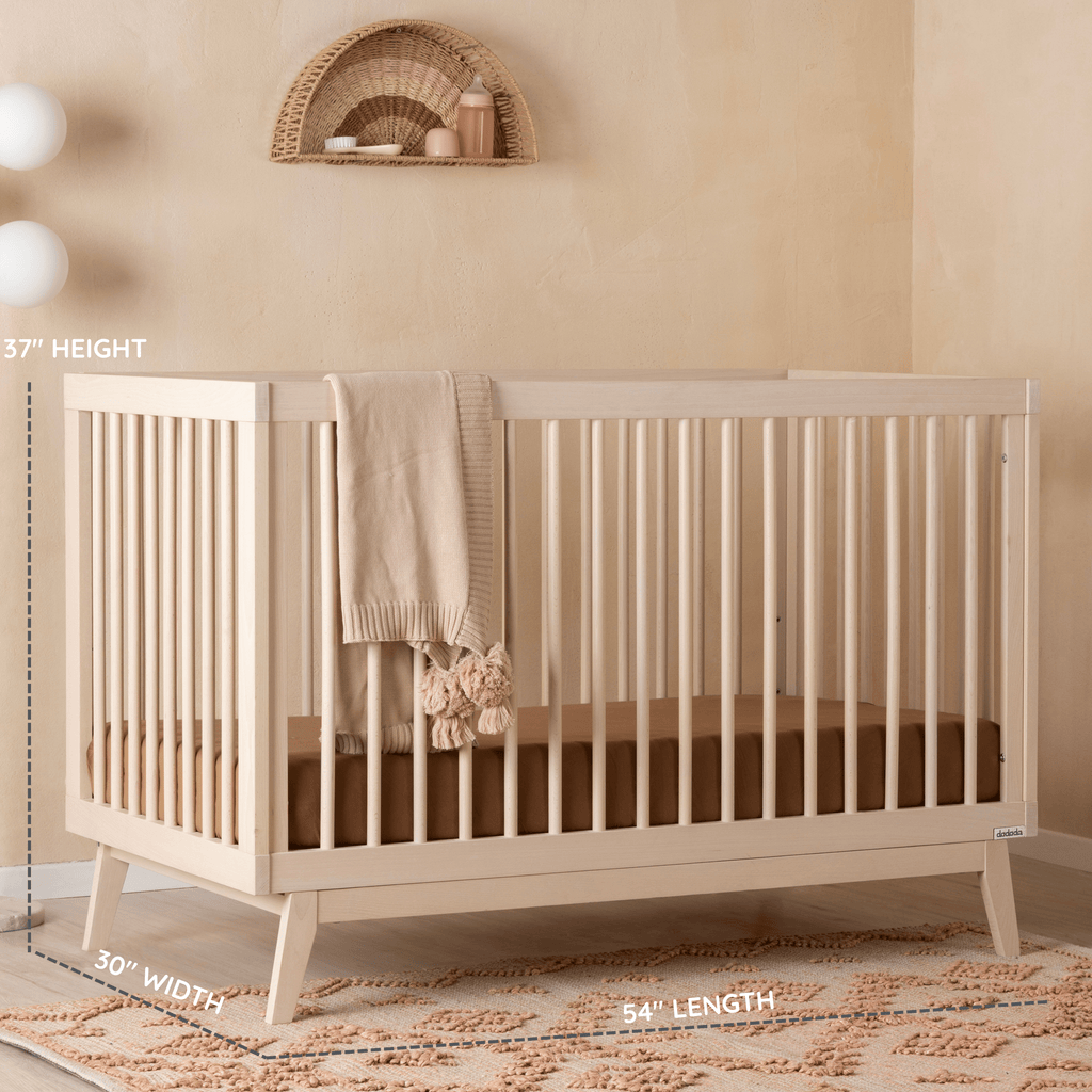 The Soho 3-in-1 Convertible Crib updates a classic open design with mid-century modern lines to complement any interior. Sturdy inclined legs tuck beneath a strong frame and all four walls allow easy air circulation. With three mattress positions available, you can easily adjust the bed heights to match your baby’s growth from newborn to toddler (toddler bed conversion kit sold separately). Steeped in elegance and constructed from solid beech wood, the Soho 2-in-1 Crib pairs perfectly with the Soho Dresser, or with any other dadada dresser.